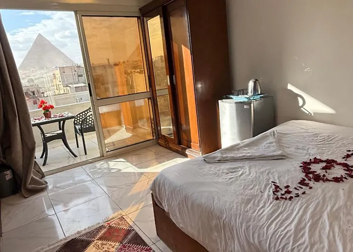 The hotel is not far from the mysterious Great Sphinx of Giza Sculpture in Cairo. The Middle East Pyramids Veiw &Jacuzzi Bed & Breakfast is just 10 minutes on foot from Giza to Cairo bus station.